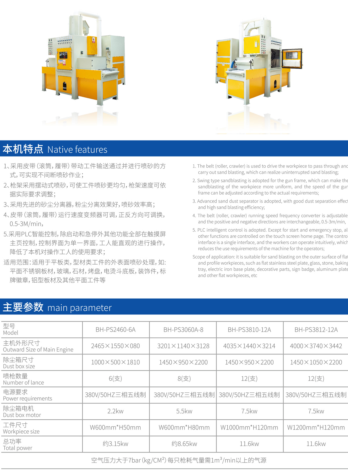 BHPS-3060-8A輸送式自動噴砂機參數(shù)及適用范圍